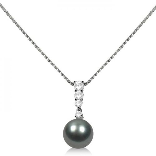 Four graduated diamonds and one cultured gray black pearl make this pendant the eye catching beauty she is sure to love.