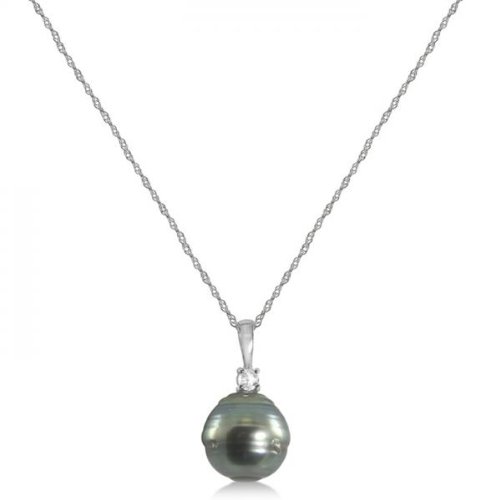 This lovely Tahitian pearl and diamond drop hangs from a detailed 18 inch rope chain. included.