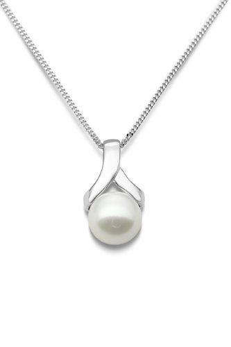 Miore - MG9038N - Collier avec Pendentif Femme - Or Blanc 375/1000 (9 carats) 1.58 gr - Perle d'eau douce - 45 cm: Amazon.fr: Bijoux