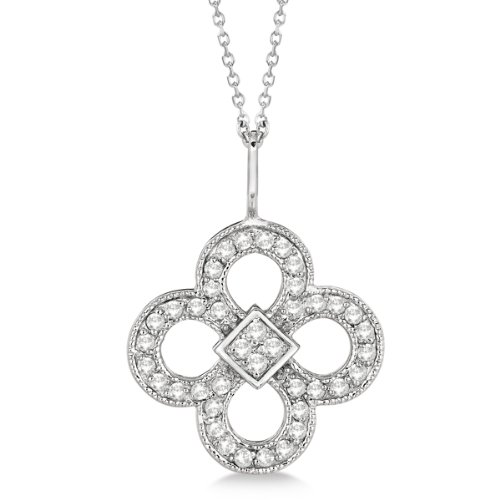Ce porte-bonheur élégant bénéficie D'un bon de 40 diamants brillants de couleur GH et SI-2 de clarté. ConA§u avec un bord milgrained ce pendentif floral est situé dans 14k paramAštres paver D'or.