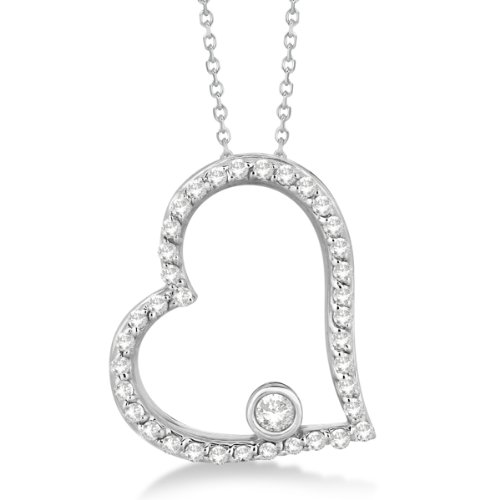 Cet élégant pendentif coeur en forme de losange dispose de 37 pavé de diamants taille brillant qui entourent un ensemble de diamants dans un serti clos. Presque incolore. ces diamants de clarté SI-2. et la couleur GH féliciter le coeur en or blanc 14K.