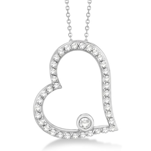 Ce pendentif coeur en forme de losange moderne dispose de 37 pavé de diamants taille brillant qui entourent un ensemble de diamants dans un serti clos. Presque incolore. ces diamants de clarté SI-2. et la couleur GH féliciter le coeur en or blanc 14K.
