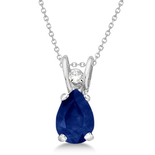 Ce pendentif diamant et saphir en or blanc 14K. Ce collier de pierres précieuses dispose D'une belle forme de poire 6x4mm saphir (.70 tw) avec un diamant 0.02ct belle.