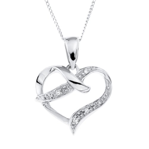 Collier Femme avec pendentif - PP03110W - Coeur - Or Blanc 375/1000 (9 Cts) 0.5 Gr - Diamant: Amazon.fr: Bijoux