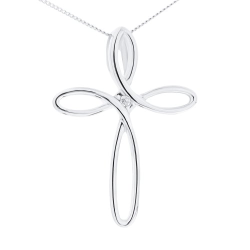 Collier avec pendentif - Femme - Croix (9 cts) 1 Gr - Diamant Pendentif en forme de c?ur avec diamants 1/10 ct en argent Pendentif en forme de cercle avec