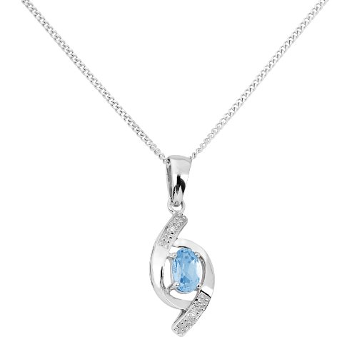 (9 carats) 1.17 gr - Topaze bleue - Diamant 0 Collier en or blanc 375 (9 carats) avec pendentif topaze Le poids d Miore - MT062N - Collier avec Pendentif