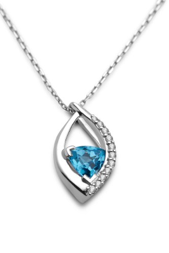 Miore - USP019P4W - Collier avec Pendentif Femme - Or Blanc 375/1000 (9 carats) 1.81 gr - Topaze Bleue