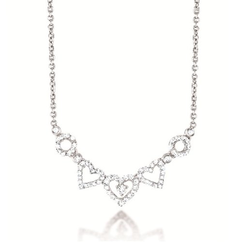 3.4grams de brillant en or blanc 14K berceaux cet féminine et douce collier multi-cÅ"ur. Glittering diamants ronds totalisant 0.40CT rend ce collier tout simplement irrésistible.