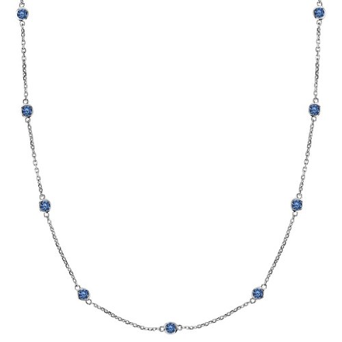 14 rond taille brillant fantaisie bleu éclat des diamants dans un cadre lunette dans ce superbe collier diamants station de chaA®ne. Chaque diamant est la main situé dans un cadre lunette et est D'environ 1 1/4 ".les uns des autres.