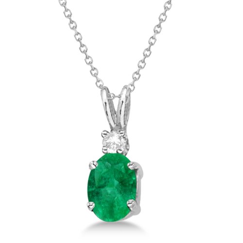 Ce pendentif émeraude authentique de l'.or blanc 14K dispose D'un ovale 7x5mm émeraude verte en forme de 0.66 carat. Ajoutez A cela un diamant taillé en brillant superbe tour de .05 ct et vous avez un exemple étonnant de simplicité élégante.