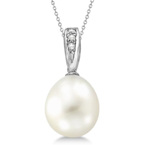 Cette culture 12mm Paspaley South Sea pendentif perle possAšde 0.06 carats de diamants lunette accents ensemble dans une monture en or blanc 14K.