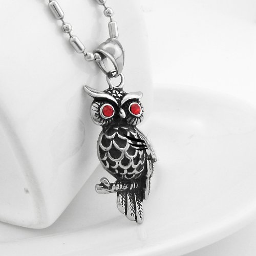 findout, casting de mode de collier de diamants de titane acier chouette pendentif (F255)
