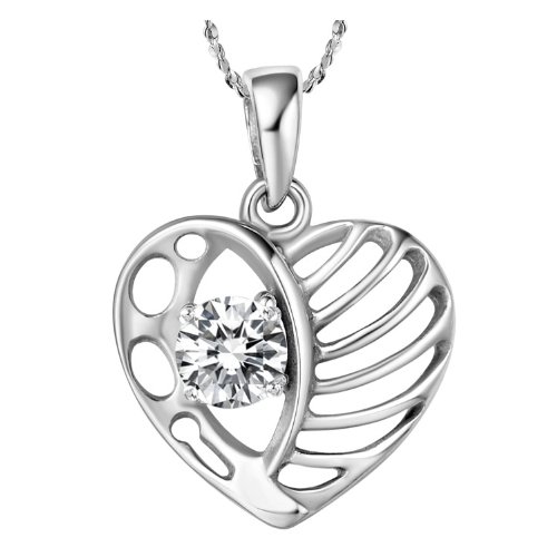findout or blanc 18 carats plaqué blanc en forme de coeur Collier en argent creux de cristal