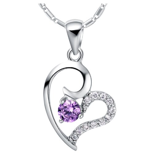 findout or blanc 18 carats plaqué Amethyst Diamond Heart Collier en argent