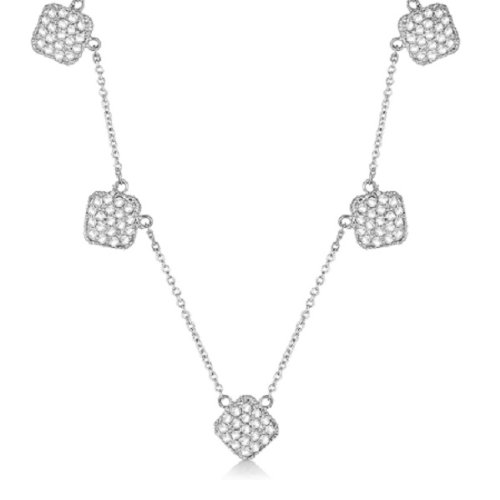 Cet unique collier blanc 14 carats D'or est la station parfaite pour les femmes. Avec 95 1.00 carat total des diamants blancs taille ronde de poids fixées dans un cadre pavé placé dans des formes carrées en forme. ils sont parfaits pour n'.importe quelle occasion spéciale. Les diamants sont un brillant presque incolore diamants de couleur GH et pureté SI1-2 Clarté.