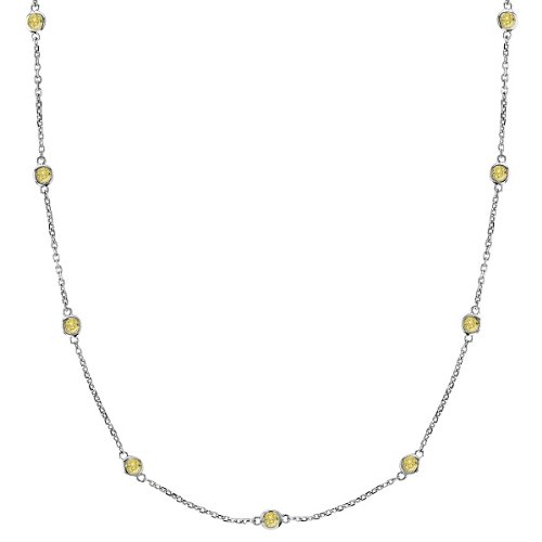14 rond taille brillant éclat des diamants fantaisie jaune dans un cadre lunette dans ce superbe collier diamants station de chaA®ne. Chaque diamant est la main situé dans un cadre lunette et est D'environ 1 1/4 ".les uns des autres.