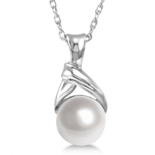 Simple and elegant. this round cultured pearl pendant necklace is set in an artistically designed 14K white gold setting.