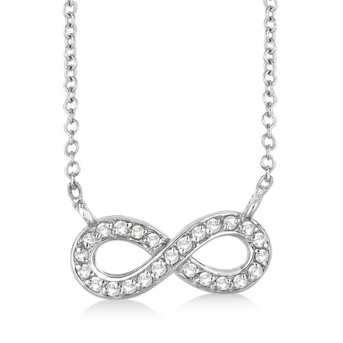 Vingt-cinq diamants ronds brillants dans un éclat de réglage pavé dans ce collier pendentif diamant de forme infini. Ce pendentif unique de chiffre huit (figure 8) en forme de losange est magnifiquement ciselé en or blanc 14k. Les diamants sont un brillant presque incolore diamants de couleur GH et pureté SI1-2 Clarté.
