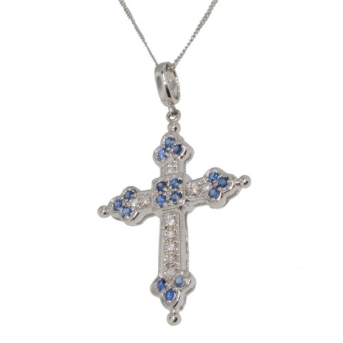 Saphir et Diamant Pendentif en Micropave or Femme - Croix - Or blanc (9 cts) 2.6 Gr Croix - Or blanc (9 cts) 1.23 Gr Collier avec pendentif - Femme - Or