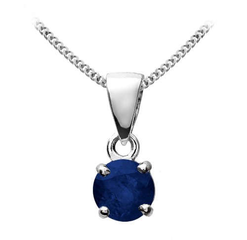 Pendentif + Chaîne Femme Solitaire Or Blanc 375/1000 avec Saphir 0.32 Carat - 9mm*5mm Chaîne 40 CM