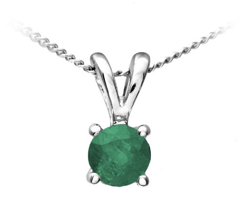 Pendentif + Chaîne Femme Solitaire Or Blanc 375/1000 avec Emeraude 0.32 Carat - 9mm*5mm Chaîne 45 CM
